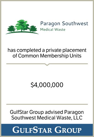 Paragon Southwest Medical Waste (PSMW), which completed its second round of financing in November 2019, utilizes its patented CoronaLux™ technology to thermally destroy certain types of medical waste. This new financing will increase the capacity of PSMW’s facility in Anahuac, Texas by over 100%, allowing the Company to meet the high demand for its services. The CoronaLux™ system employs a low-energy, plasma-enhanced, pyrolytic process to safely and reliably destroy hazardous, chemical, biological, pharmaceutical and regulated medical waste. It also significantly reduces harmful emissions associated with high-temperature thermal processes such as incineration and conventional hot plasma incineration. The result is a more efficient and sustainable destruction process, which is much cleaner, safer and environmentally friendly.